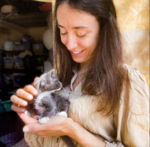 If we have met in person, you probably know that I rescue animals. In 2021 I had my first Florida rescues at the inn. six tiny orphaned kittens. Here is a beautiful French guest with Q-Tip (2021), Georgie, (2025)–peep those insane eyeballs–and Fathead and Littlefoot (2024–by law all found baby animals go directly into ones bra).